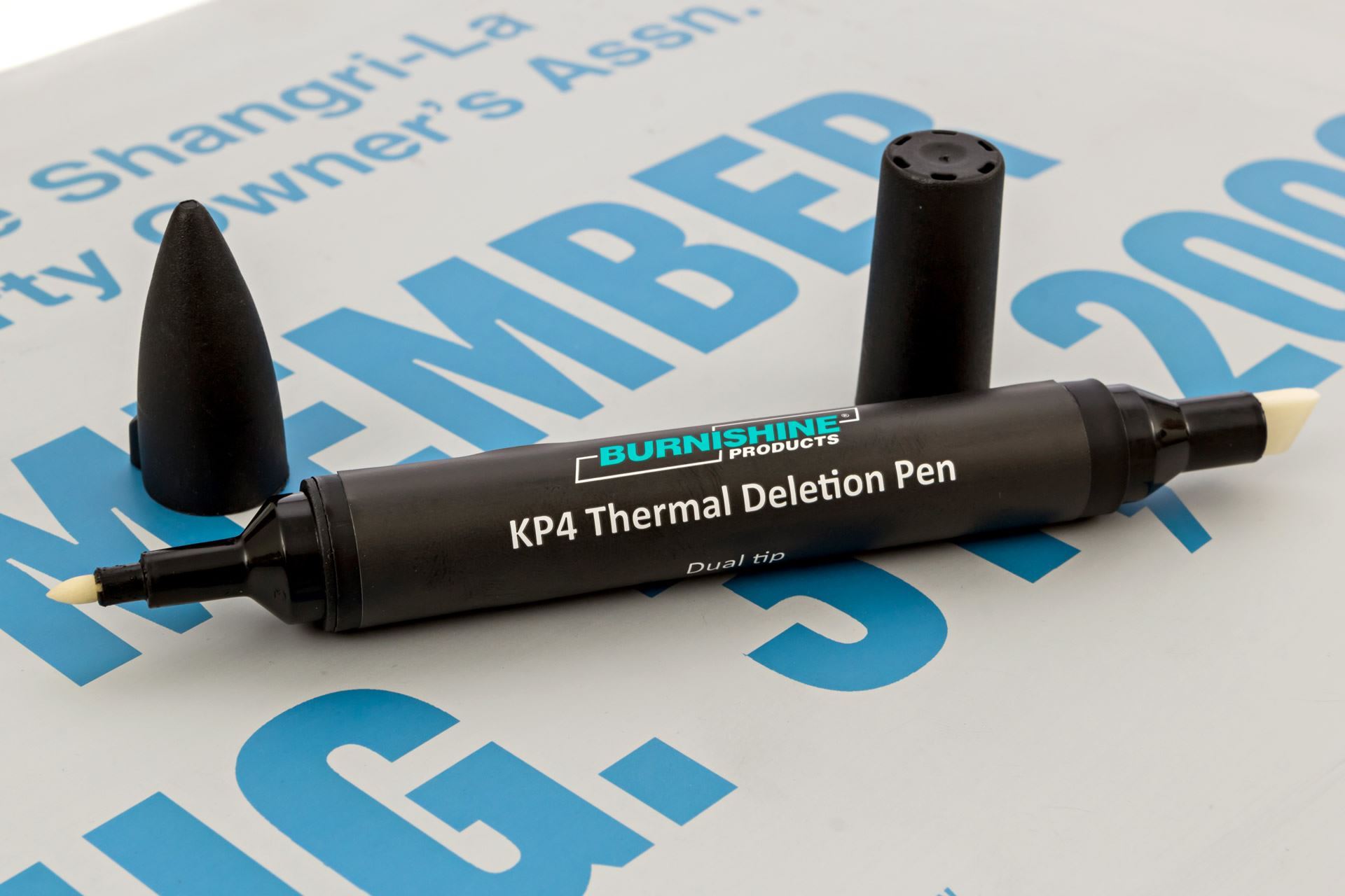 Burnishine’s new KP4 Thermal Deletion Pen is formulated to work with four of Kodak’s most popular thermal plates — including baked Electra XD! We worked closely with the manufacturer to ensure product effectiveness and compatibility. This is the only pen available that will remove images from baked Electra XD plates. We worked closely with Kodak to make sure our formula works well with to delete areas on the plates. In addition the KP4 pen also works with the brand new AGFA Eclipse Plate (tested by AGFA)!