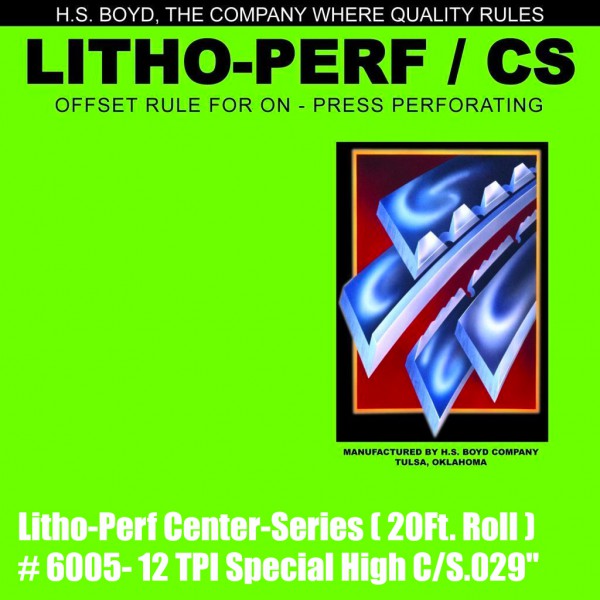 An original Boyd product, Litho-Perf offset perforating rule remains the industry standard for reliability and high-quality performance. Litho-Perf is available in 6-, 8-, 12- and 16-tooth rules. Rule height selections from .0125 inch to .029 inch allow you to perform perforations on a variety of paper and card stocks for jobs such as direct response mailing cards, coupon booklets and tickets.