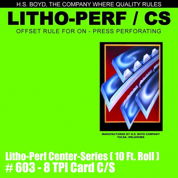 An original Boyd product, Litho-Perf offset perforating rule remains the industry standard for reliability and high-quality performance. Litho-Perf is available in 6-, 8-, 12- and 16-tooth rules. Rule height selections from .0125 inch to .029 inch allow you to perform perforations on a variety of paper and card stocks for jobs such as direct response mailing cards, coupon booklets and tickets.