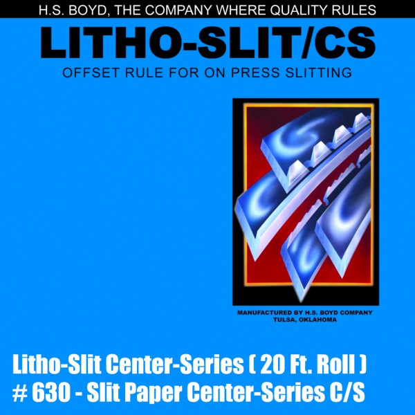 Litho Slit Center Series center mounted rule is ideal for virtually all types of die cuts and cut outs.  Litho-Slit eliminates separate runs by permitting on-press, straight-cutting possibilities. The rule is effective for slitting, straight-line die-cutting and insertion slots in presentation folders and can be used on either card or paper stocks.  Litho-Slit can be selected with either a straight edge or our industry-exclusive serrated edge to meet specific criteria.