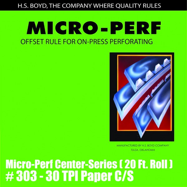 Micro-Perf is ideal for perforating continuous-feed forms, creating a perforation line that remains clean with no stray fibers or rough edges.  Micro-Perf is also ideal for jobs that will be passed through a laser printer after being perforated.
